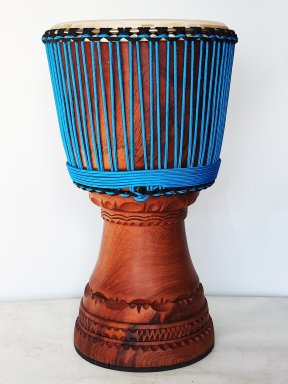 The best Burkinabé, Guinean and Malian djembe shells are selected to make unparalleled djembes thanks to the wide choice of skins and string colours we have.