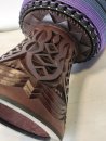 Montage fers inox, caoutchouc SBR sur mesure au pied, habillage drisse pré étirée. Façonné dans l’atelier de Antoine Gillain de "L’atelier du djembé" à Bordeaux.