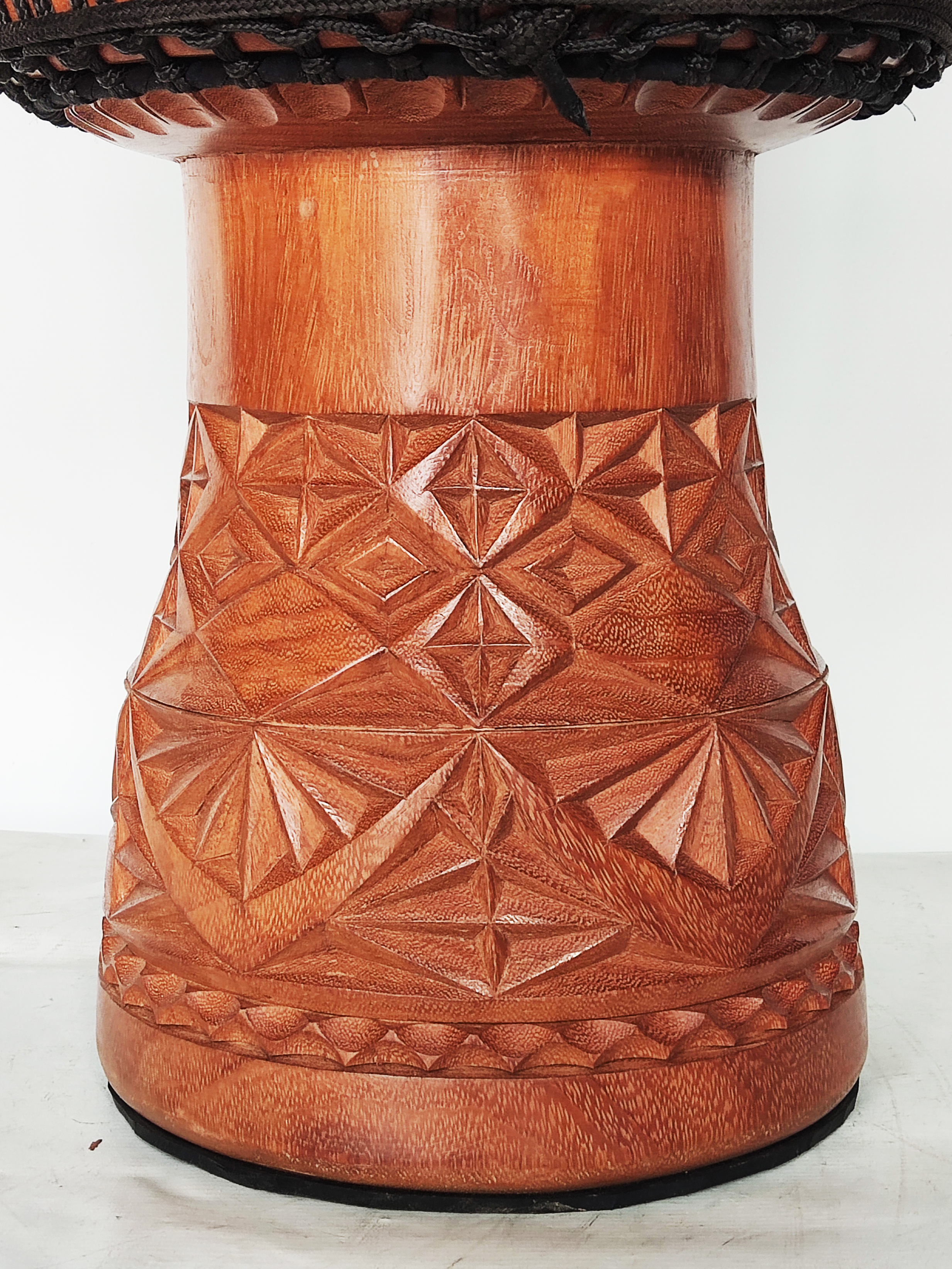 Couldn’t ask for more! The sound of this special Lenke wood ! goatskin, Guinean. Djembe is all that I hoped it would be and more. Perfectly tuned. The most authentic sound, resonance and vibe. Beautiful carving. Goat hair folded over the rings. Rubber tyre on the foot.