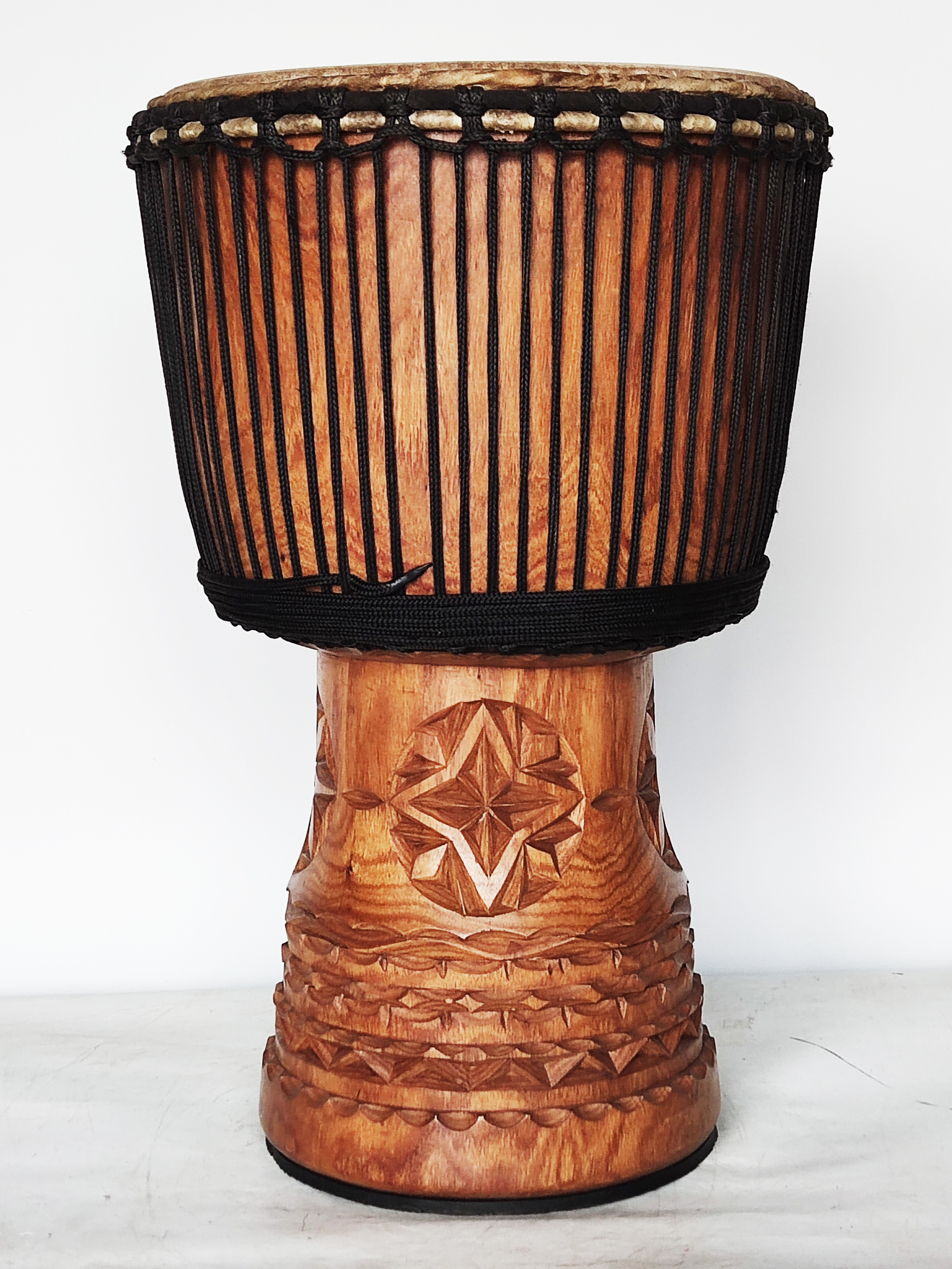 Couldn’t ask for more! The sound of this special Lenke wood ! goatskin, Guinean. Djembe is all that I hoped it would be and more. Perfectly tuned. The most authentic sound, resonance and vibe. Beautiful carving. Goat hair folded over the rings. Rubber tyre on the foot.