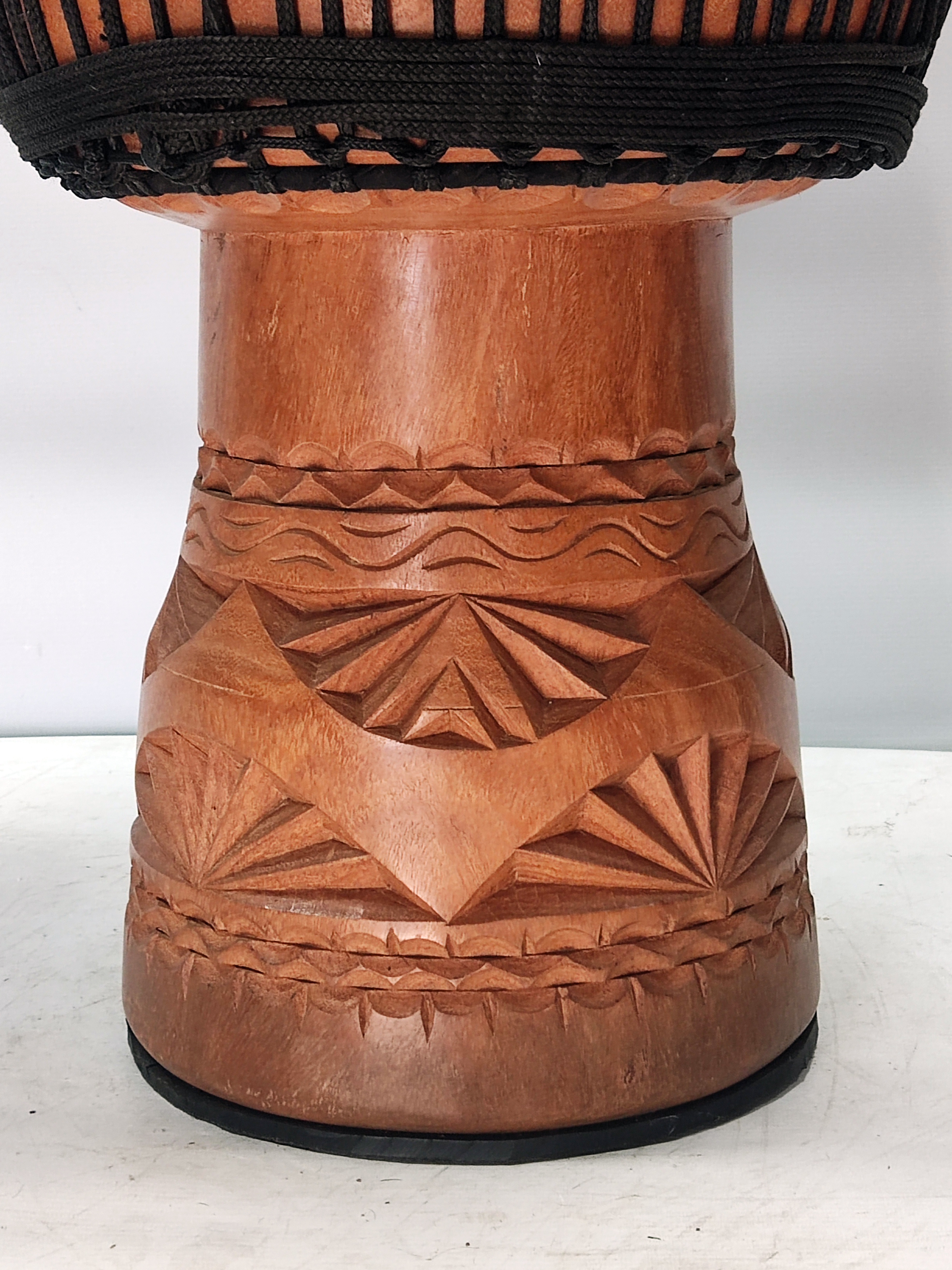 Couldn’t ask for more! The sound of this special Lenke wood ! goatskin, Guinean. Djembe is all that I hoped it would be and more. Perfectly tuned. The most authentic sound, resonance and vibe. Beautiful carving. Goat hair folded over the rings. Rubber tyre on the foot.