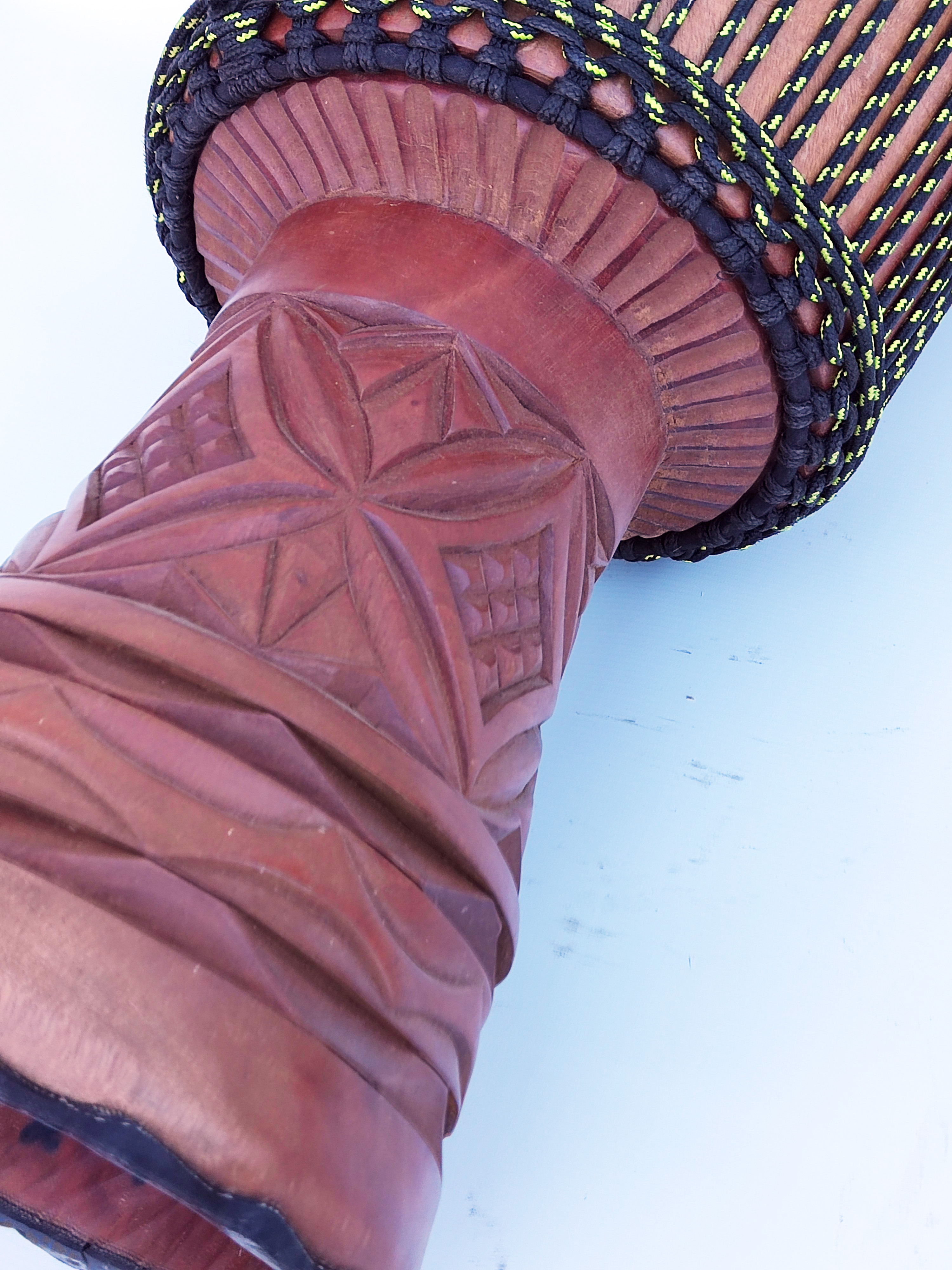 Couldn’t ask for more! The sound of this special Lenke wood ! goatskin, Guinean. Djembe is all that I hoped it would be and more. Perfectly tuned. The most authentic sound, resonance and vibe. Beautiful carving. Goat hair folded over the rings. Rubber tyre on the foot.