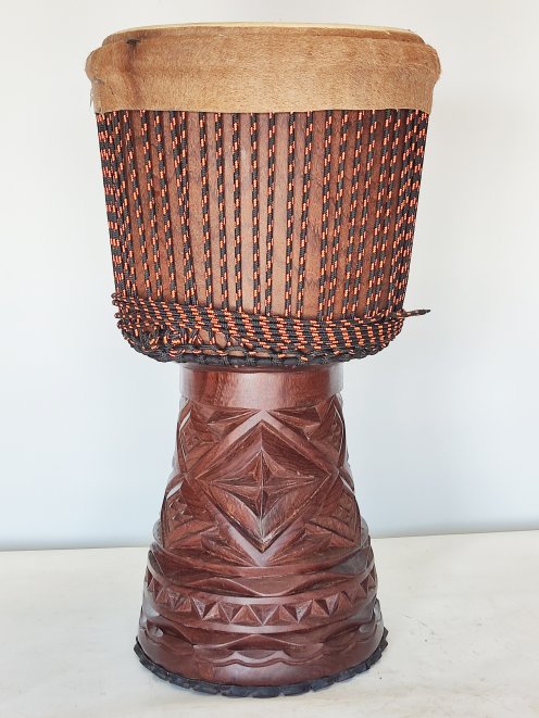 Couldn’t ask for more! The sound of this special Lenke wood ! goatskin, Guinean. Djembe is all that I hoped it would be and more. Perfectly tuned. The most authentic sound, resonance and vibe. Beautiful carving. Goat hair folded over the rings. Rubber tyre on the foot.