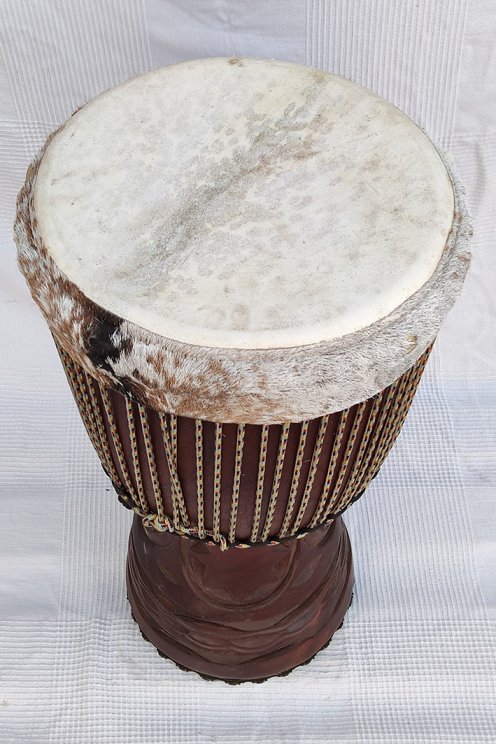 Couldn’t ask for more! The sound of this special Lenke wood ! goatskin, Guinean. Djembe is all that I hoped it would be and more. Perfectly tuned. The most authentic sound, resonance and vibe. Beautiful carving. Goat hair folded over the rings. Rubber tyre on the foot.