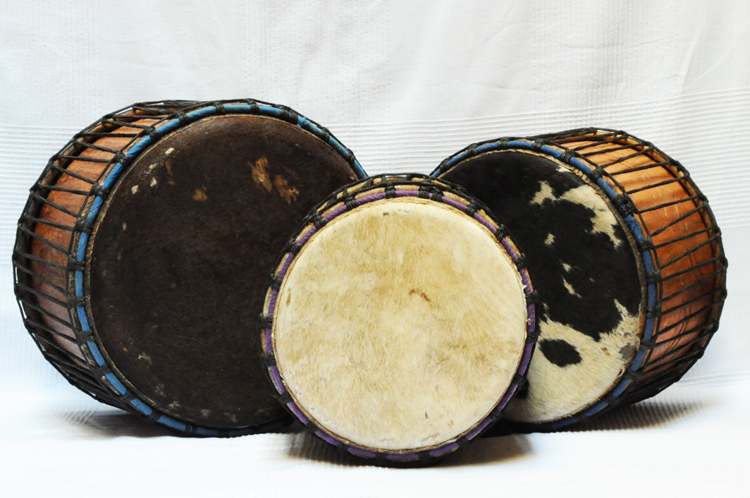 Set of three Ghana mini-dunduns: buy djundjuns (doum doums, doundouns, dununs) set