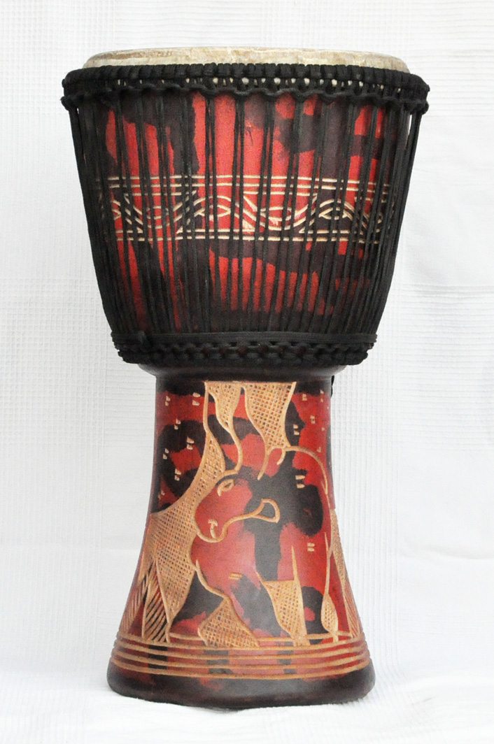 This djembe is conceived by Ghanaian craftsmen using local materials and traditional skills.