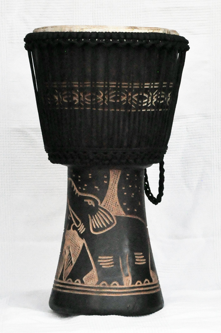 This djembe is conceived by Ghanaian craftsmen using local materials and traditional skills.